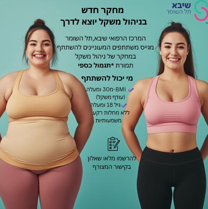 המרכז הרפואי שיבא מציע לכם הזדמנות לקחת חלק במחקר העוסק בטיפול בעודף משקל והשמנה.